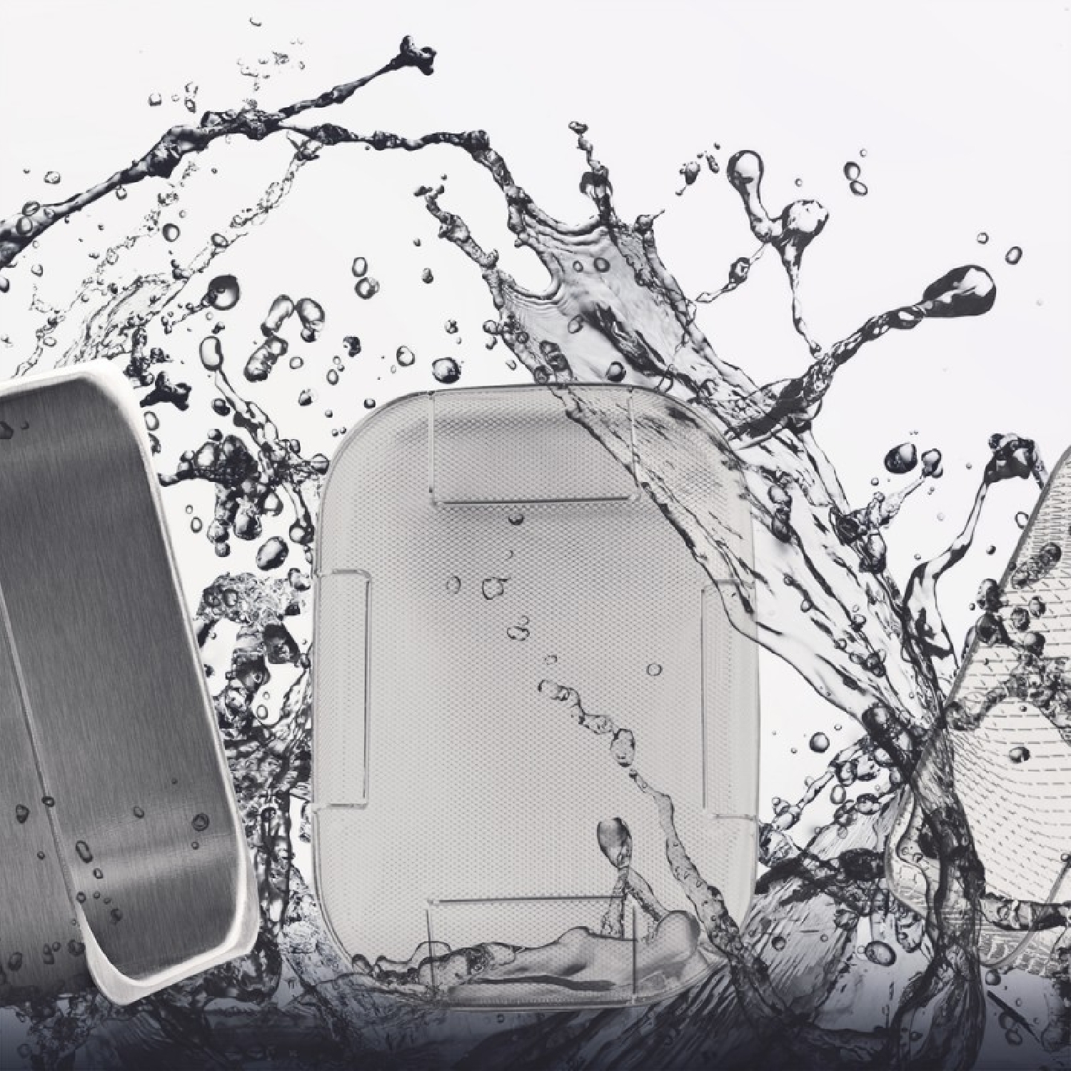 Tigela, cesto de fritar e filtro OilCleaner aptos para a limpeza na máquina da louça.
