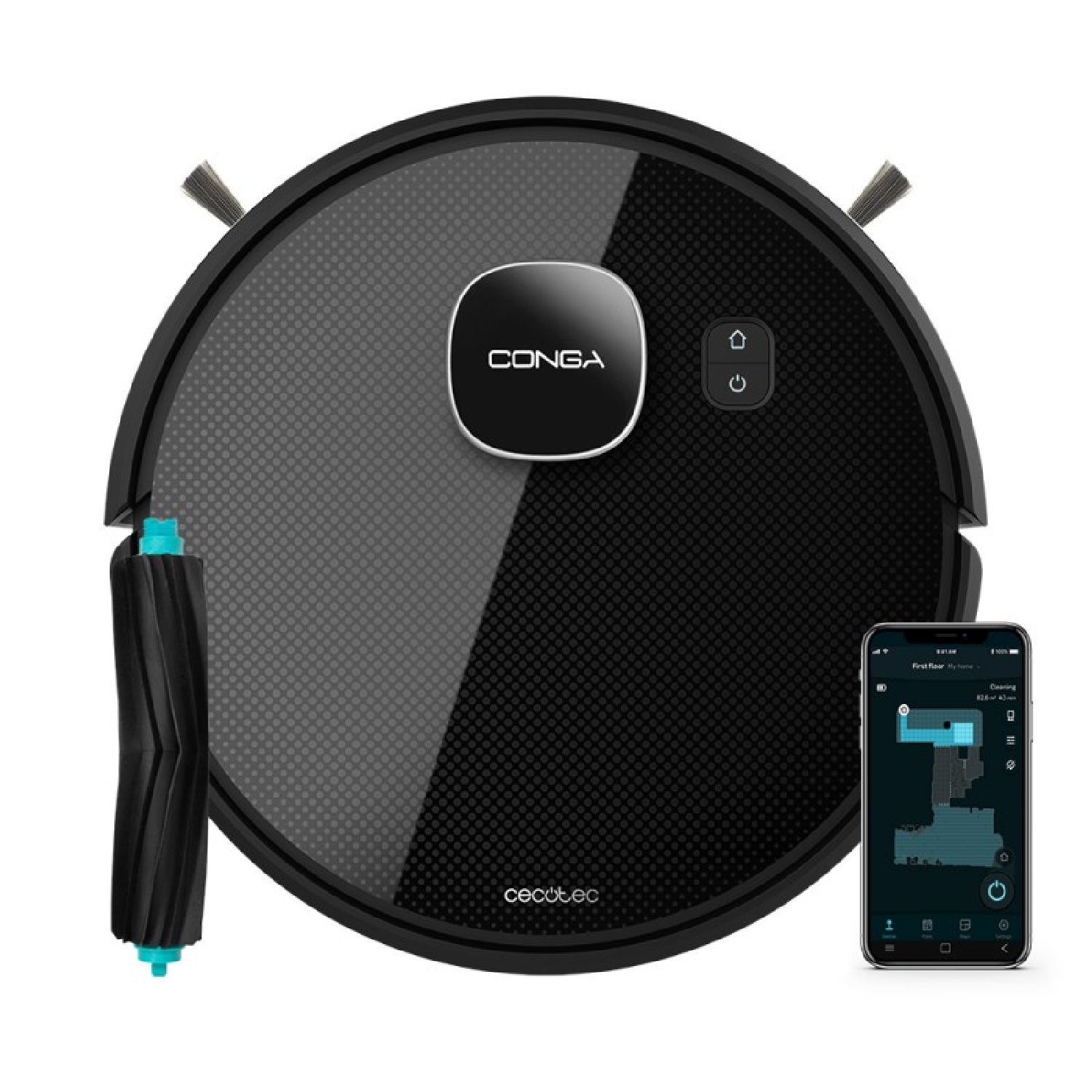 Robô aspirador Conga Eternal Pet Vital. 110 minutos de autonomia. 2500 Pa de potência de aspiração com um motor de aspiração de 3000 Pa. 3 níveis de potência e de lavagem. Escova de silicone. 10 programas. APP Assistente Virtual Alexa. Programação.
