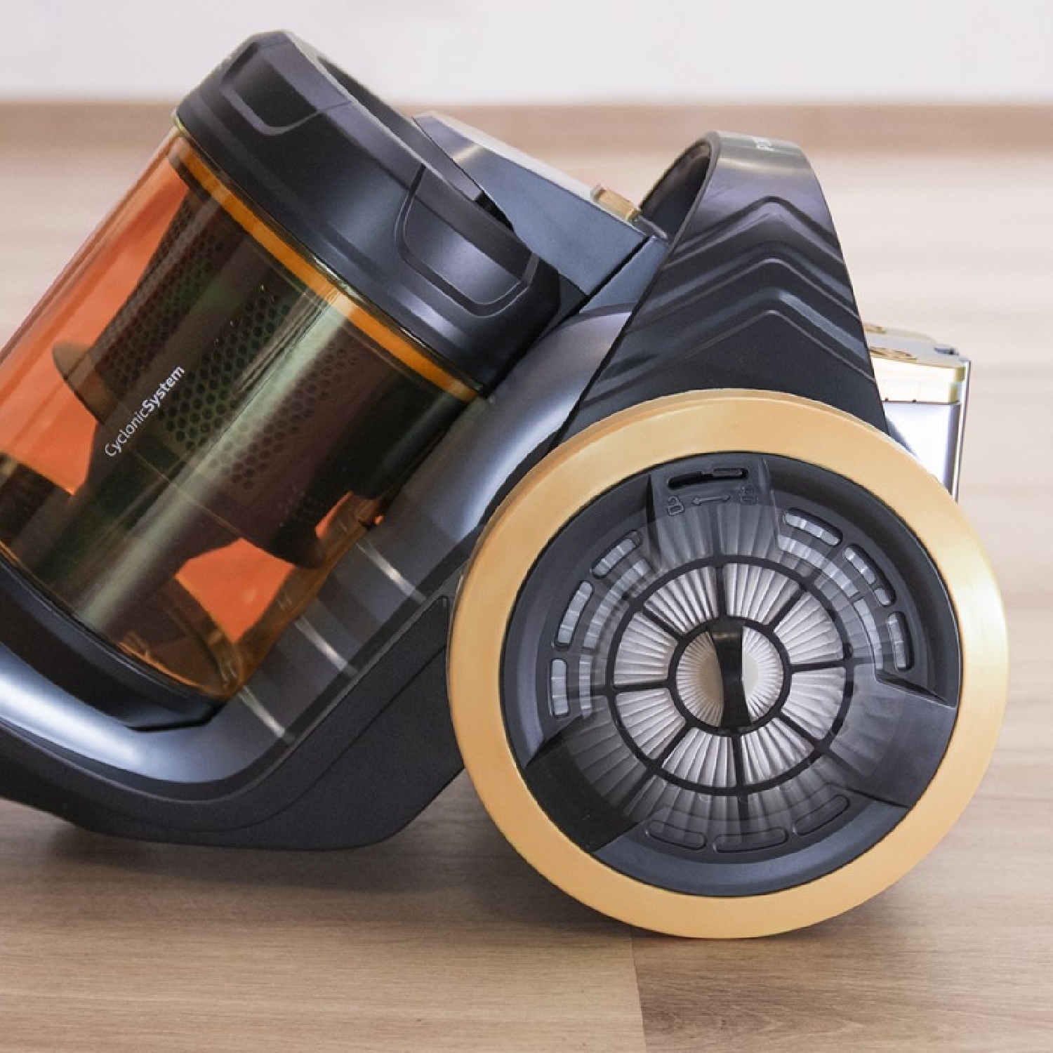 Tecnologia Cyclonic System que graças ao seu sistema multiciclónico sem sacos alcança uma limpeza extrema ao mesmo tempo que mantém um poder de sucção constante durante toda a sua vida útil.