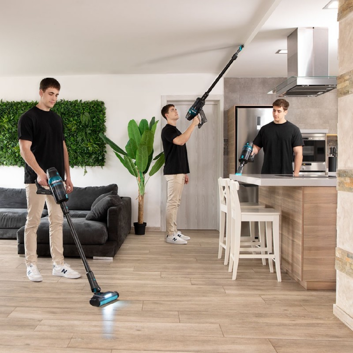 Aspirador sem cabos 3 em 1: vertical, vassoura e de mão.