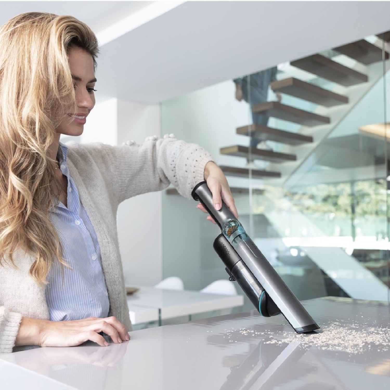Aspirador de mão com motor Digital Brushless e grande potência de sucção.