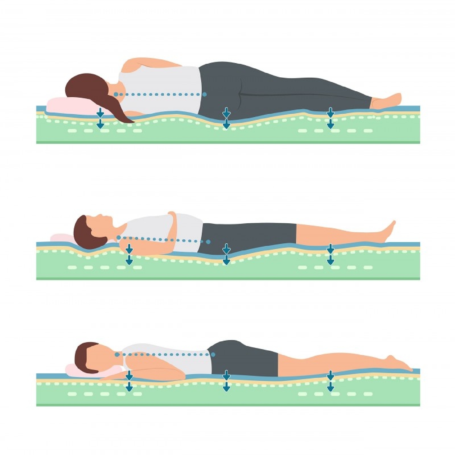 Espuma viscoelástica, que distribui a pressão uniformemente para manter a coluna vertebral na posição ótima.