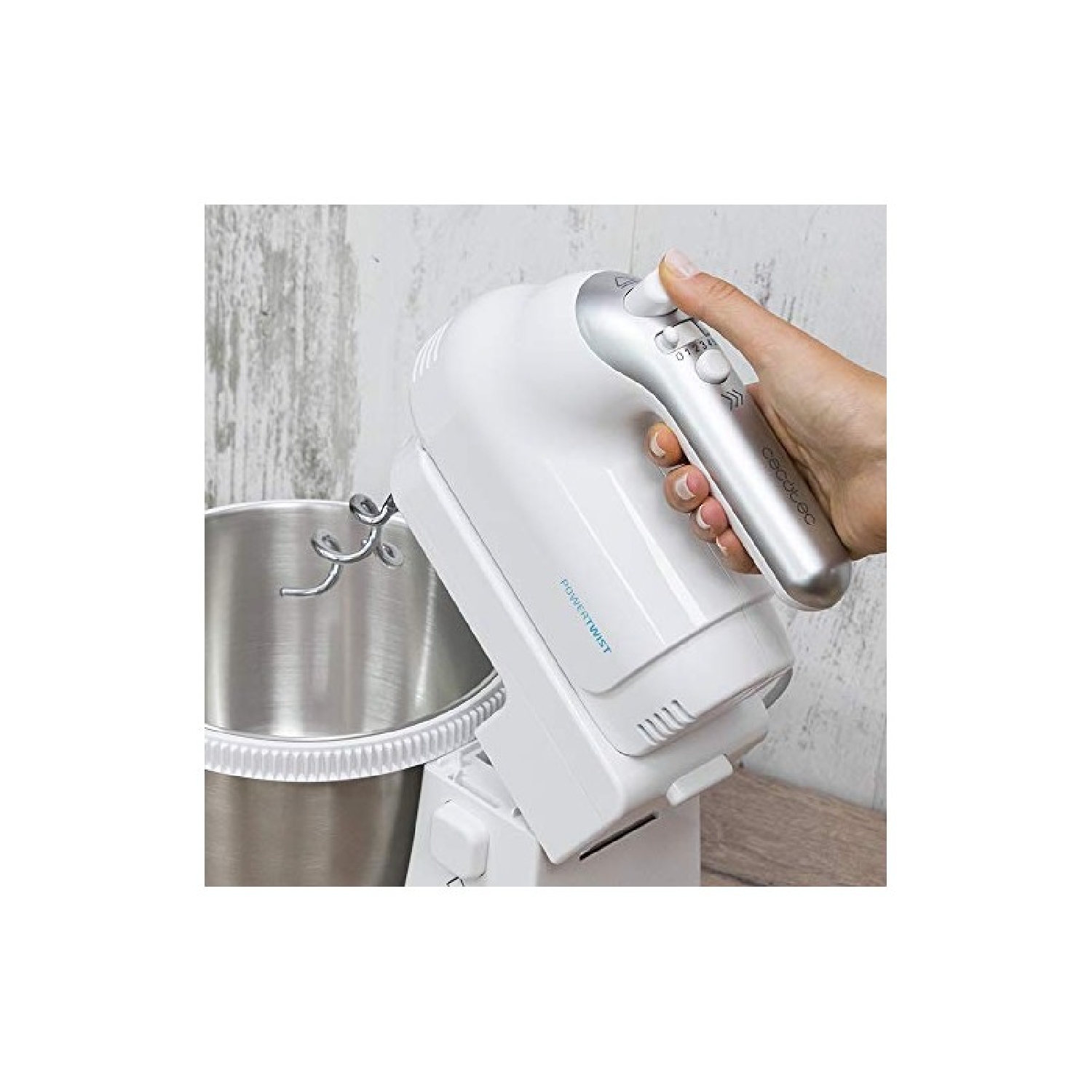 Dispõe de dois resistentes ganchos amassadores em aço inoxidável para conseguir massas homogéneas e com maior volume.