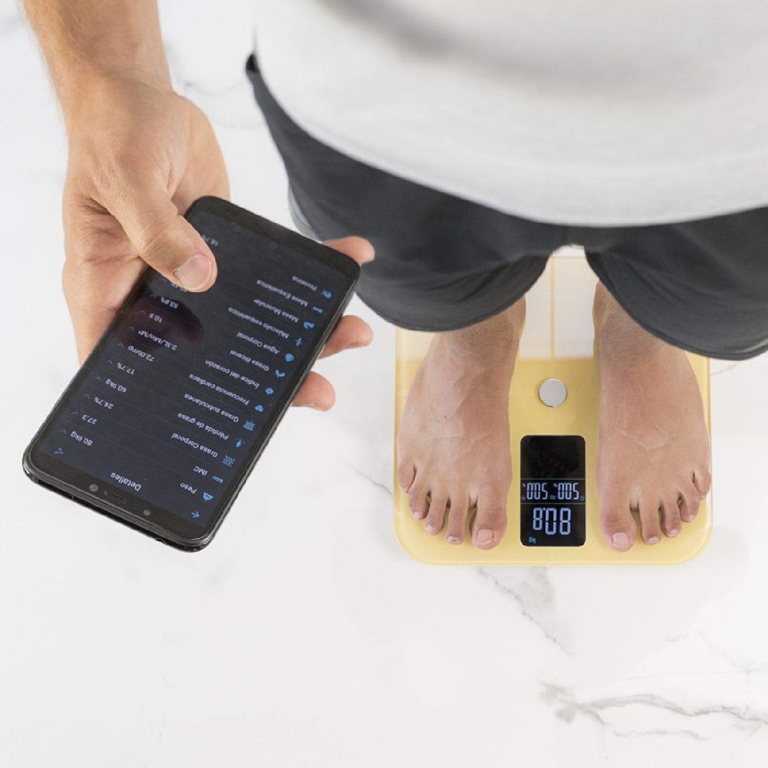 Balança de casa de banho inteligente de grande ecrã com medição de bioimpedância e App.