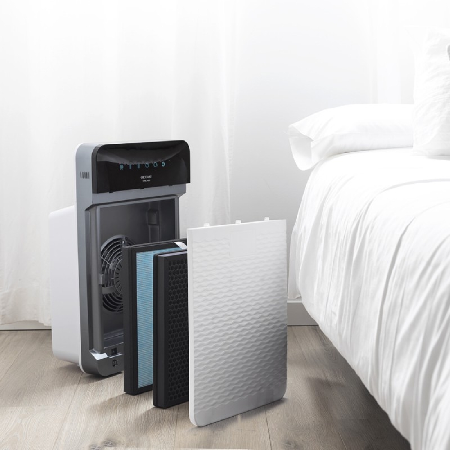 O seus 3 processos de filtração através do pré-filtro, o filtro de carvão ativado e o filtro de alta eficiência, minimizam a quantidade de partículas nocivas para a saúde existentes no ar.