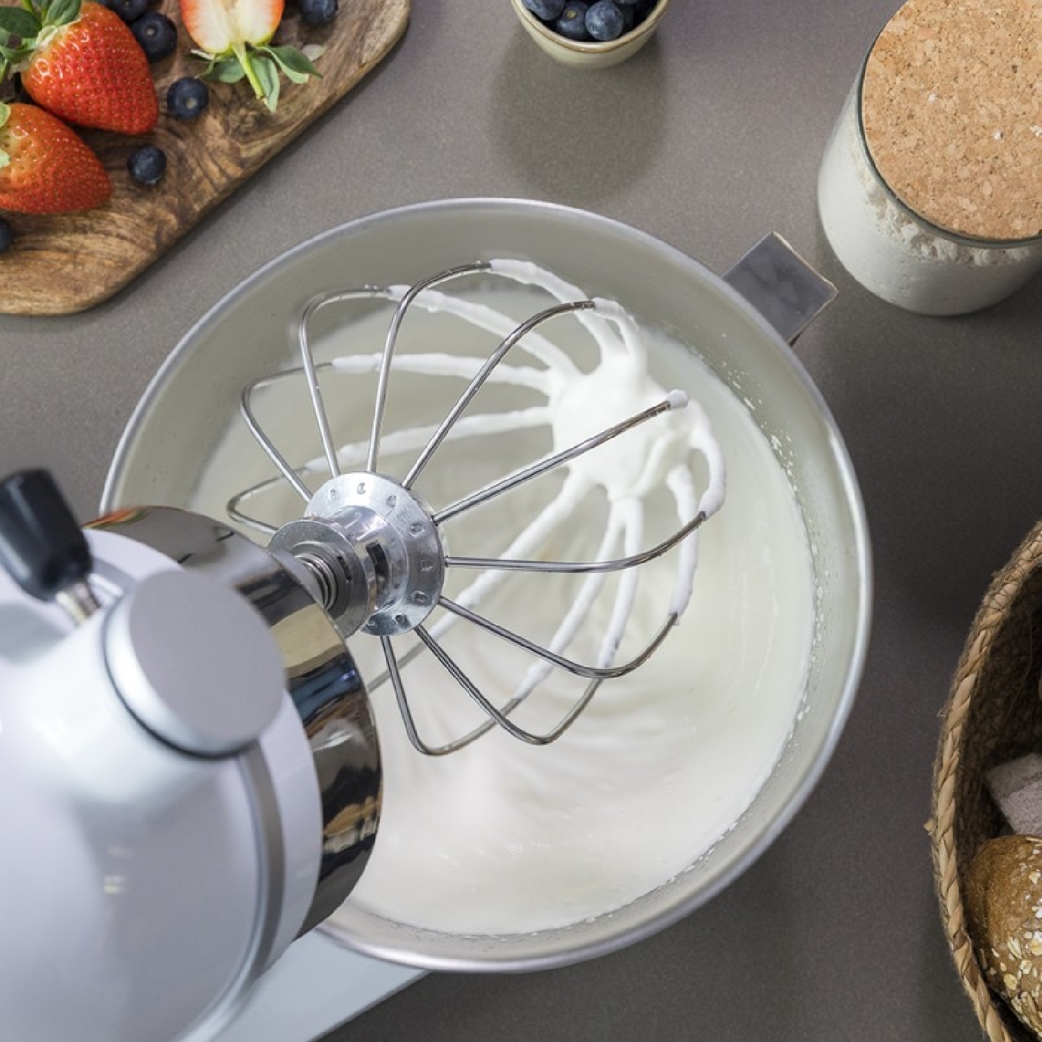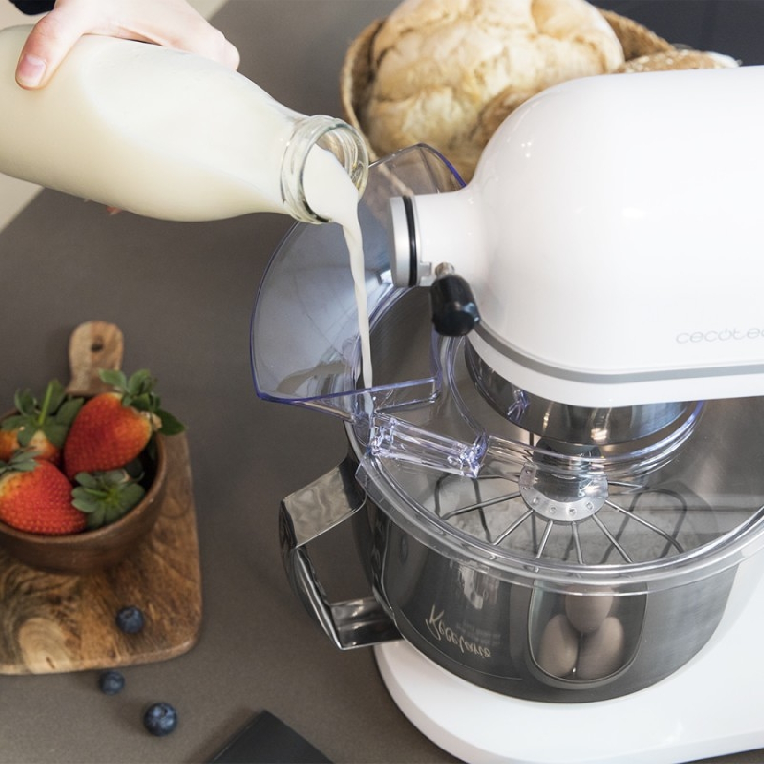 Batedeira com motor DC de alta potência de 800 W, ideal para as massas e misturas mais densas. Resultados uniformes com consistência perfeita.